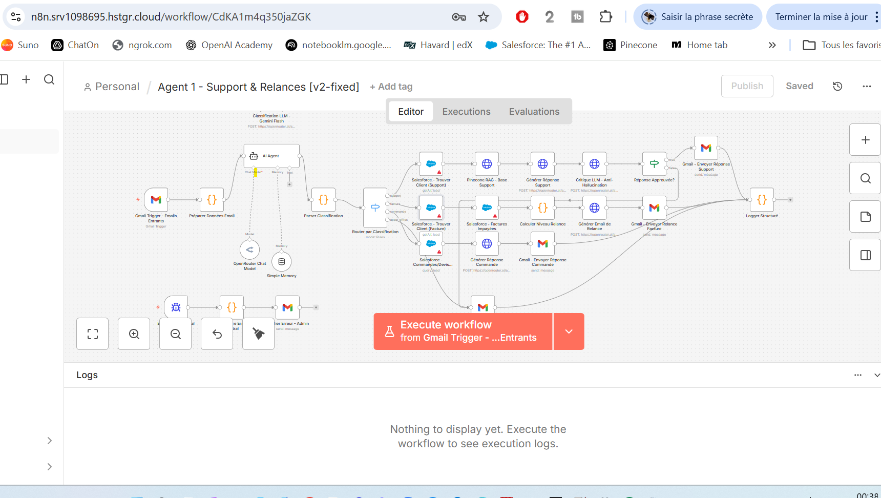 Toutes les quinze minutes, elle vérifie que les rendez-vous sont bien synchronisés dans les agendas de tout le monde. Si elle détecte un conflit, elle prévient immédiatement les personnes concernées. Chaque matin à 08h00, elle déclenche les relances du jour pour les factures en attente.